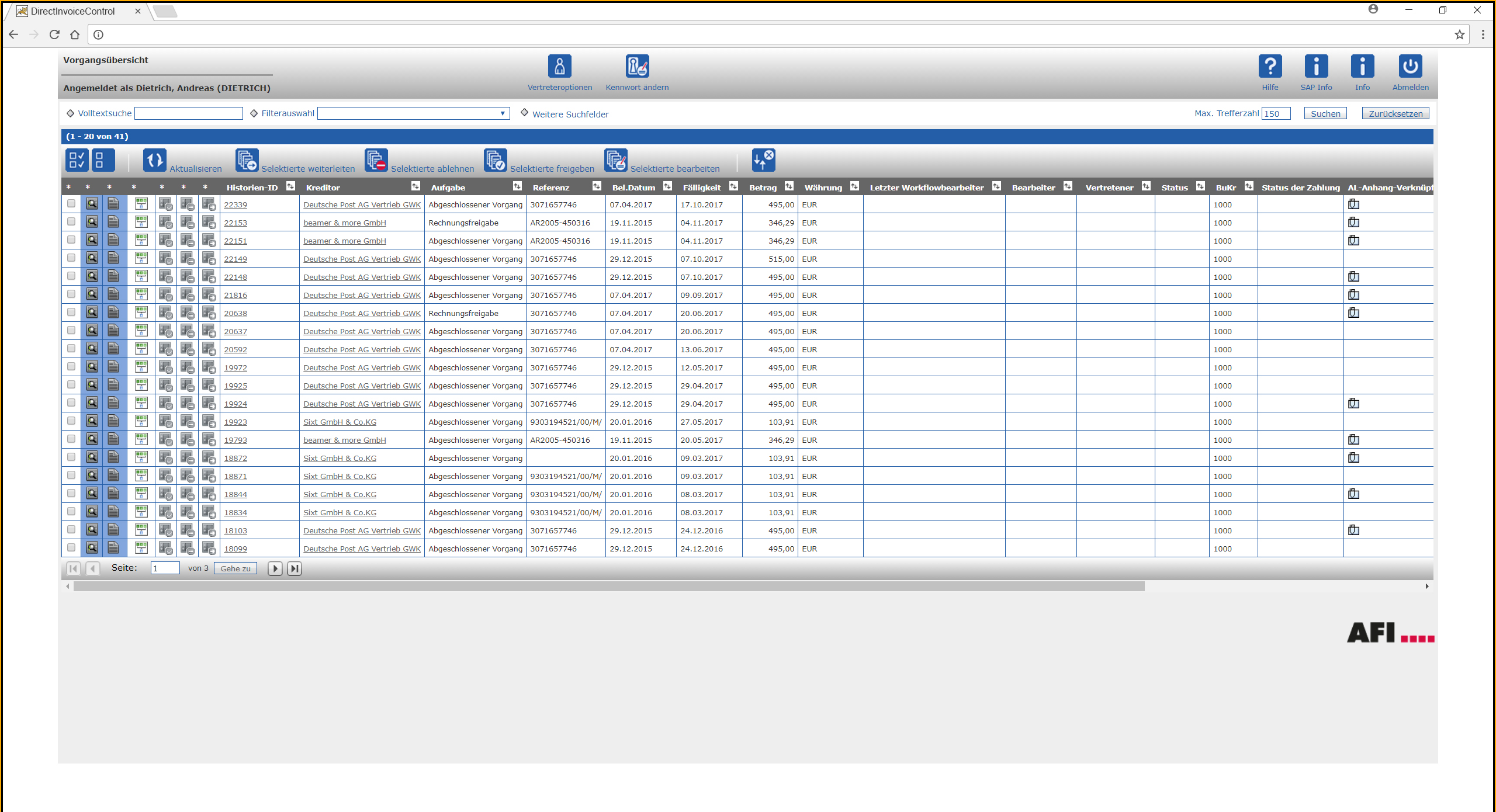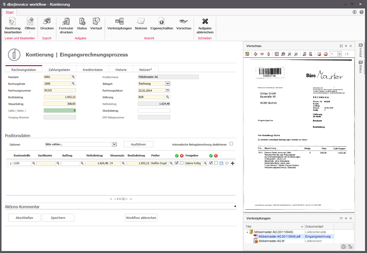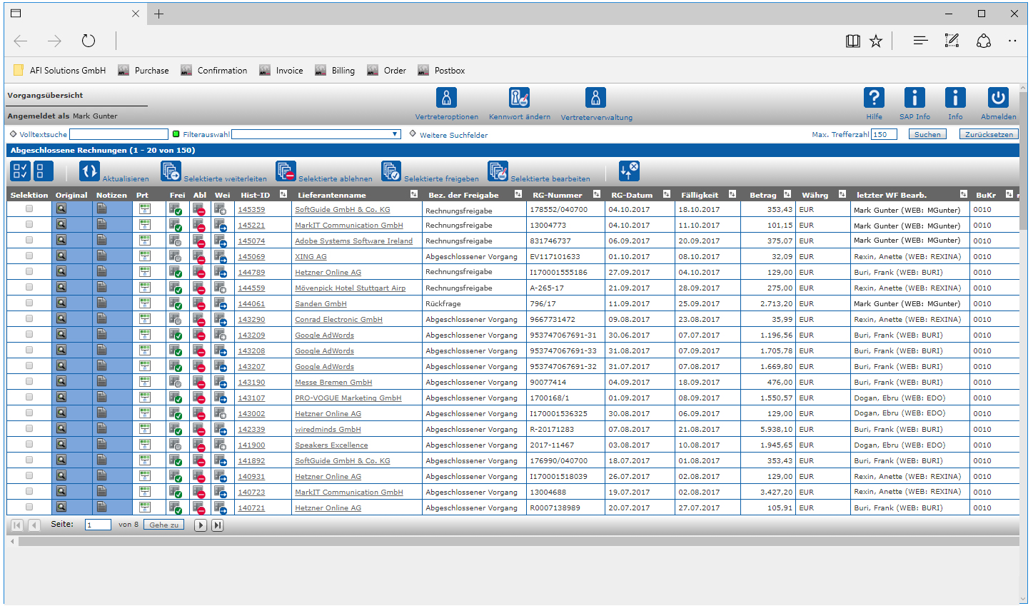 Im Weiß-Buch Eingangsrechnungsbearbeitung sind Screenshots von Anwendungsbeispielen abgedruckt. Dabei sind die wesentlichen Inhalte lesbar, es sind aber vielleicht nicht alle Details erkennbar die ein Leser anschauen möchte.